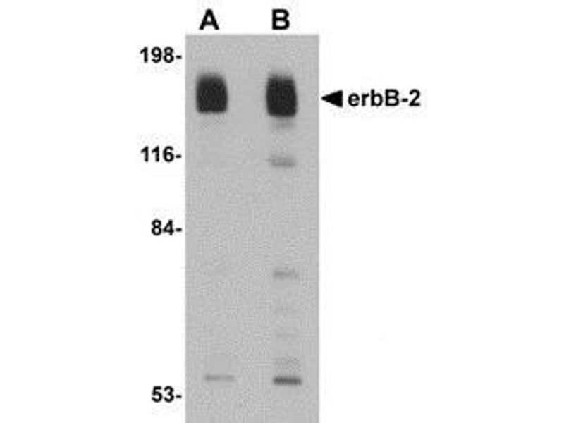 - The ErbB family consists of four closely related tyrosine kinase receptors that act as potent mediators of normal cell growth and development. Aberrant expression or function of one or more of these receptors can play a major role in the development and evolution of cancer. ErbB-2, also known as HER2, has been implicated in the evolution of both breast and gastric cancers, and is evident in other cancer types such as ovarian and salivary gland tumors. ErbB-2 possesses an active tyrosine kinase domain, but no direct ligand has been identified yet. ErbB-2 is the preferred binding partner to the other members of the ErbB family and is thought to act primarily through the Ras-MAPK, PI3k-PKB/Akt, and PLC-PKC signaling pathways. Numerous anti-cancer strategies have been employed against erbB-2, such as antibody-based therapies to prevent ligand binding or receptor activation through dimerization, antibody-dependent cell mediated cytotoxicity, in addition to direct kinase inhibition to prevent molecular activation/downstream signaling.Synonyms: HER-2, MNL19, NEU, NEU proto-oncogene, NGL, Receptor tyrosine-protein kinase erbB-2, Tyrosine kinase-type cell surface receptor HER2, c-erbB-2, p185erbB2