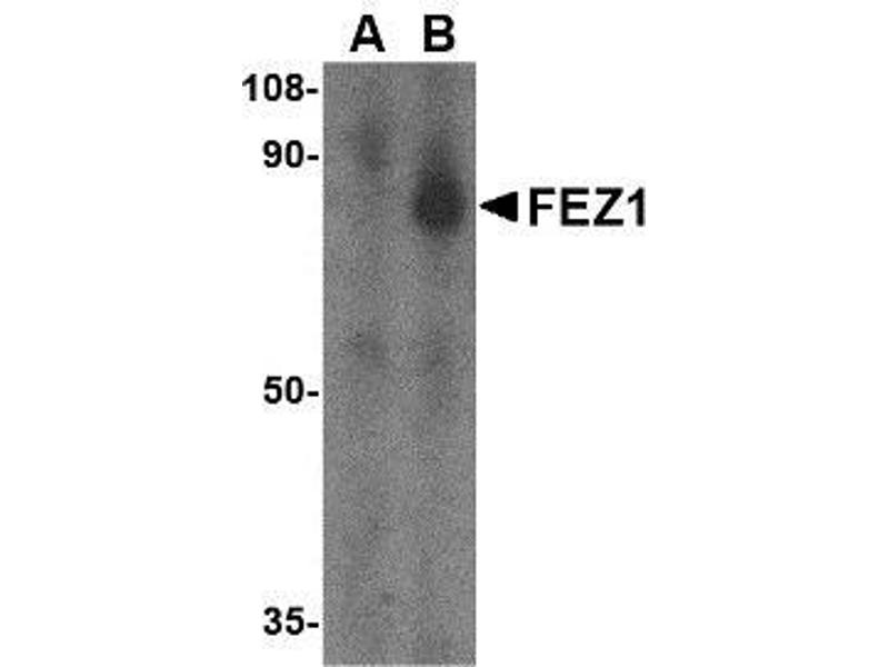 Similar to its C. elegans homolog UNC-76, mammalian FEZ1, an abundant membrane protein and protein kinase C (PKC)-Z substrate, is involved in axonal guidance. Following phosphorylation by PKC-Z, FEZ1 translocates from the plasma membrane to the cytoplasm. FEZ1 is then able to interact with a number of proteins involved in axonal outgrowth and cellular transport such as DISC1, a candidate gene for schizophrenia, as well as kinesin-1, a microtubule-based motor protein. FEZ1 also interacts with proteins involved in transcriptional regulation and chromatin remodeling, suggesting that FEZ1 may have nuclear regulatory functions in addition to those for neuronal development. At least two distinct isoforms of FEZ1 are known to exist. Despite its predicted molecular weight, FEZ1 will often run at higher molecular weight in SDS-PAGE.Synonyms: FEZ1, Fasciculation and elongation protein zeta-1, Zygin I