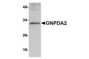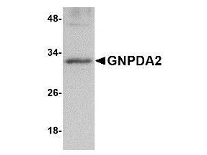 GNPDA2 antibody was raised against an 8 amino acid peptide near the carboxy terminus of human GNPDA2.