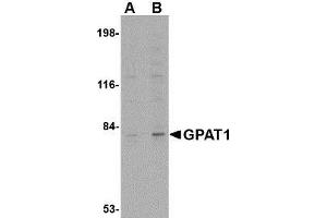 Glycerol-3-phosphate acyltransferase 1 (GPAT1), one of four known GPAT isoforms, is located on the mitochondrial outer membrane, allowing reciprocal regulation with carnitine palmitoyltransferase-1. It is thought to be critical for the development of hepatic steatosis, steatosis triggered by GPAT1 overexpression leads to hepatic and possibly peripheral insulin resistance. GPAT1 is transcriptionally upregulated by insulin and sterol regulatory element binding protein (SREBP-1) and downregulated by AMP-activated protein kinase. Mice deficient in GPAT1 exhibit decreased triacylglycerol (TAG) in cardiomyocytes even in high-fat diets, suggesting that GPAT1 contributes significantly to TAG accumulation in heart tissue during lipogenic or high fat diets. At least two isoforms of GPAT1 are known to exist.Synonyms: Glycerol-3-phosphate acyltransferase 1, KIAA1560