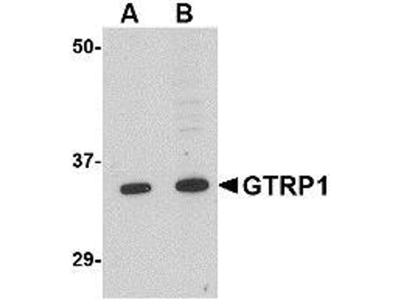 Growth hormone regulated TBC protein 1 (GRTP1) was identified through microarray analysis as a gene whose expression is regulated by growth hormone (GH). It contains the TBC signature motif of GTPase activator proteins of Rab-like small GTPases. GRTP1 mRNA is expressed at highest levels in testes, and is also present in kidney, lung, liver, and intestine. Administration of GH to mice resulted in an increase in GRTP1 mRNA in testes, but a decrease of GRTP1 mRNA in kidney and liver. GRTP1 was identified as an HIV dependency factor (HDF), suggesting that GRTP1 may be an important drug target in HIV treatment. At least three isoforms of GRTP1 are known to exist, this antibody should recognize all isoforms.Synonyms: Growth hormone-regulated TBC protein 1, TBC1 domain family member 6
