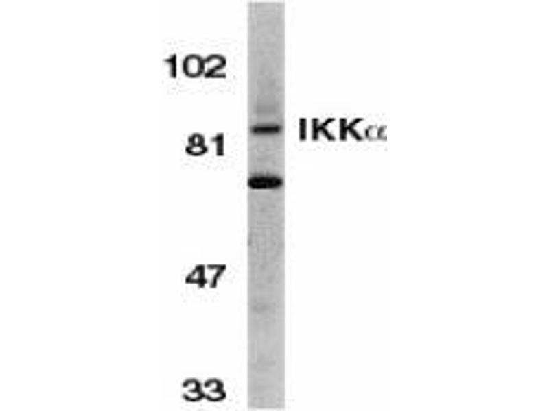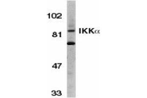 IKK alpha antibody was raised against a peptide corresponding to amino acids 658 to 674 of human IKK alpha, which differs from corresponding murine sequence by one amino acid. This polyclonal antibody has no cross response to IKKb or IKKy.