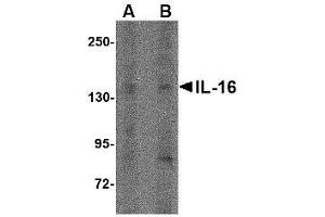 IL-16 was initially identified as a chemotactic cytokine, but is now known to possess a wide range of activities. Later studies have more fully characterized IL-16 as an immunomodulatory cytokine that contributes to the regulatory process of CD4+ T cell recruitment and activation at sites of inflammation in association with asthma and several autoimmune diseases. The precursor of IL-16 (pro-IL-16) is thought to be cleaved towards the C-terminal region by Caspase-3, releasing a 20 kDa active form that binds to and signals through CD4. Besides acting as a chemotactic cytokine, IL-16 is thought to also be involved in the regulation of T cell proliferation and multiple infectious, immune-mediated, and autoimmune inflammatory disorders including irritable bowel syndrome, systemic lupus erythematosus, and neurodegenerative disorders. At least two isoforms of IL-16 are known to exist, the longer isoform (also known as NIL-16) is detected only in neurons of the cerebellum and hippocampus. This antibody will only detect the NIL-16 isoform.Synonyms: IL-16, LCF, Lymphocyte chemoattractant factor