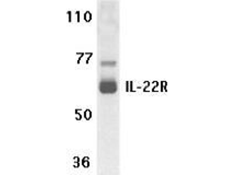 A novel cytokine, designated IL-TIF for IL-10 related T cell-derived inducible factor and IL-22, was recently identified (1-3). The receptor for IL-22 (IL-22R, also termed CRF2-9 and IL-TIF-R1 chain) is a new member of the class II cytokine receptor family (3,4). IL-22R forms a complex with IL-10 receptor b chain and mediates IL-22 signaling. IL-22 and its receptor activate JAK-STAT signaling pathway. IL22R is expressed in normal liver and kidney and their cell lines HepG2 and TK-10. A soluble form of IL-22 receptor, also termed IL-22 binding protein (IL-22BP) and IL-22 receptor-a 2 (IL-22RA2), was identified very recently (5-7). IL-22BP prevents binding of IL-22 to the functional cell surface IL-22R complex and neutralizes IL-22 activity. LPS induces IL-22 expression, which indicates the role of IL-22 in inflammatory response.Synonyms: CRF2-9, Cytokine receptor class-II member 9, Cytokine receptor family 2 member 9, IL-22 receptor subunit alpha-1, IL-22R-alpha-1, IL-22RA1, Interleukin-22 receptor subunit alpha-1, ZcytoR11
