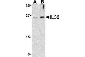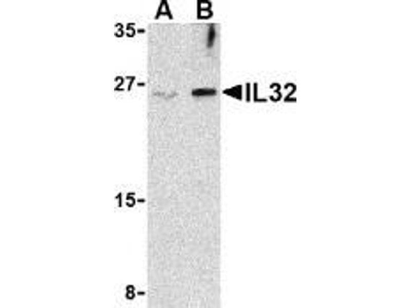 IL-32 antibody was raised against a 16 amino acid peptide from near the center of human IL-32.