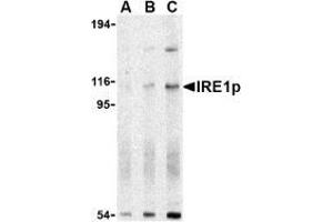 Accumulation of malfolded proteins in the endoplasmic reticulum (ER) activates the unfolded protein response (UPR) and the upregulation of the ER molecular chaperones GRP78 and GRP 94 (1,2). These proteins are normally bound to ER transmembrane proteins such as IRE1p and ATF6 (3,4) but ER stress causes their dissociation. This allows IRE1p, a serine-threonine protein kinase to transduce the unfolded protein signal from the ER to the nucleus. IRE1p also has an endoribonuclease activity that is required to splice X-box binding protein (XBP1) mRNA converting it to a potent UPR transcriptional activation (5). Depletion of IRE1p through the expression of a dominant negative form of IRE1p has no effect on transfected cells, but cell death via apoptosis occurs under stress conditions that cause unfolded proteins to accumulate in the ER (6). Two alternatively spliced transcript variants encoding different isoforms have been found for this gene.Synonyms: Endoplasmic reticulum-to-nucleus signaling 1, IRE1a, IRE1p, Inositol-requiring protein 1, Ire1-alpha, Serine/threonine-protein kinase/endoribonuclease IRE1
