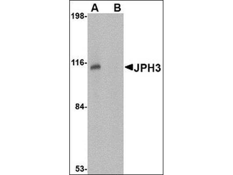 - JPH3 antibody was raised against a 18 amino acid peptide near the center of human JPH3.