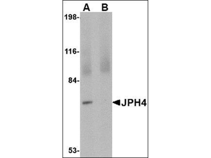 Junctional complexes between the plasma membrane (PM) and endoplasmic/sarcoplasmic reticulum (ER/SR) are a common feature of all excitable cell types and mediate cross talk between cell surface and intracellular ion channels. Junctophilins (JPs) are important components of the junctional complexes. JPs are composed of a carboxy-terminal hydrophobic segment spanning the ER/SR membrane and a remaining cytoplasmic domain that shows specific affinity for the PM. Four JPs have been identified as tissue-specific subtypes derived from different genes: JPH1 is expressed in skeletal muscle, JPH2 is detected throughout all muscle cell types, and JPH3 and JPH4 are predominantly expressed in the brain. In the CNS, both JPH3 and JPH4 are expressed throughout neural sites and contribute to the subsurface cistern formation in neurons. Mice lacking both JPH3 and JPH4 subtypes exhibit serious symptoms such as impaired learning and memory and are accompanied by abnormal nervous functions.Synonyms: JP4, JPHL1, KIAA1831