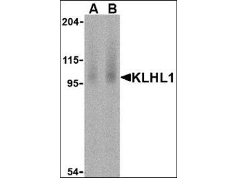 - KLHL1 antibody was raised against a 14 amino acid peptide from near the amino-terminus of human KLHL1.