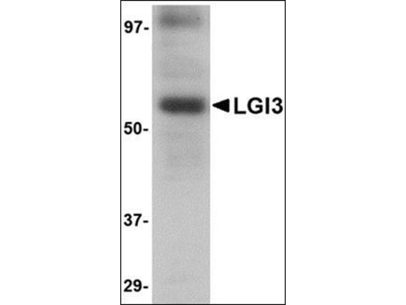 LGI3 antibody was raised against a 12 amino acid peptide from near the center of human LGI3.