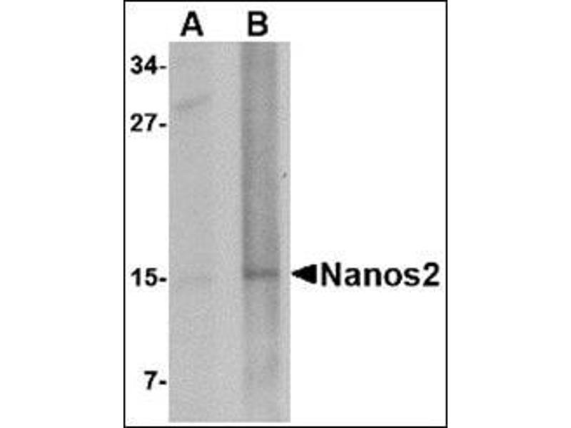 Nanos2 antibody was raised against a 13 amino acid peptide near the amino terminus of the human Nanos2.