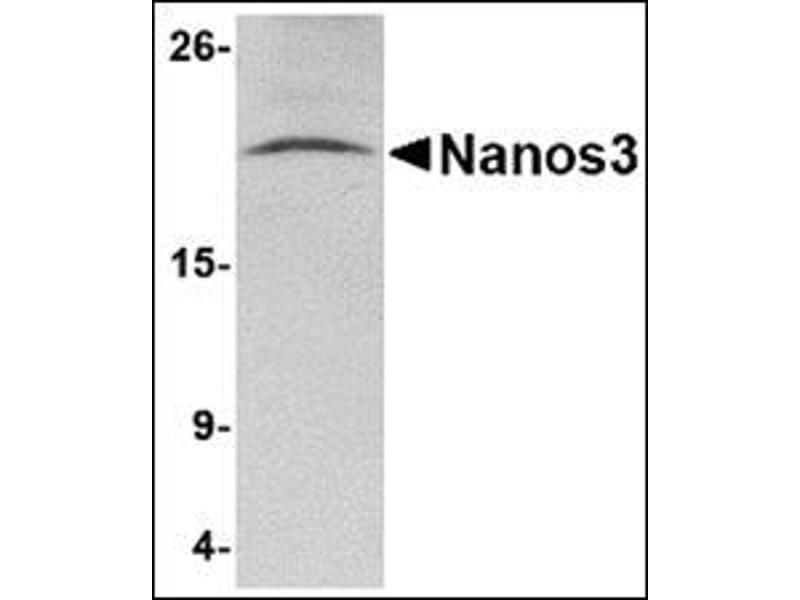 - Nanos3 antibody was raised against a 16 amino acid peptide near the carboxy terminus of the human Nanos3.