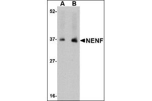 - NENF antibody was raised against a 15 amino acid peptide from near the carboxy terminus of human NENF.