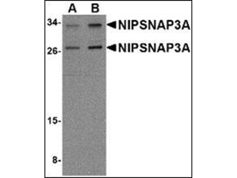 NIPSNAP3A antibody was raised against a 16 amino acid peptide near the center of human NIPSNAP3A.