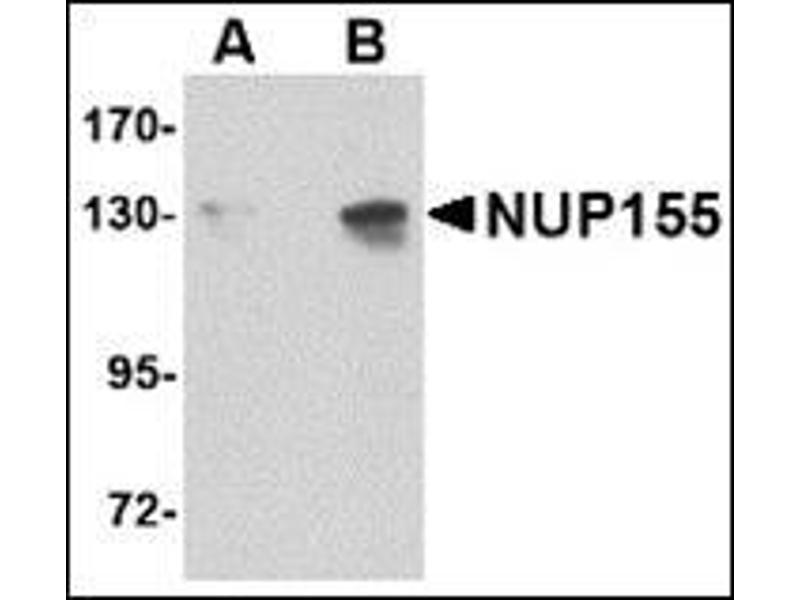 - NUP155 antibody was raised against a 18 amino acid peptide from near the carboxy terminus of human NUP155.