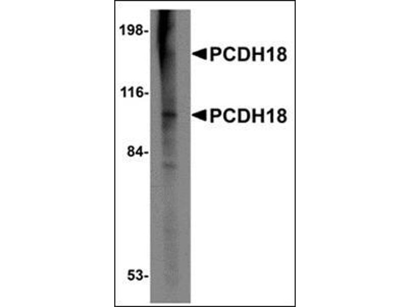 - This antibody detects PCDH18. It is predicted to not cross-react with PCDH12.
