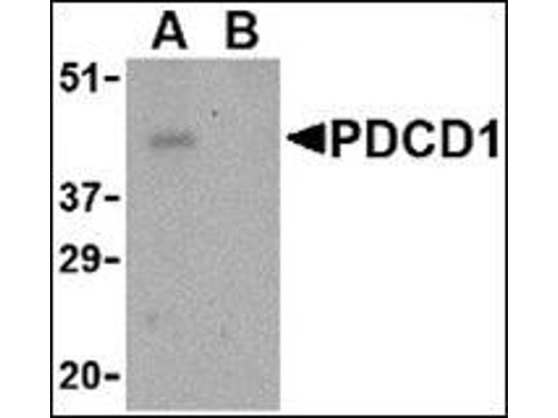 Cell-mediated immune responses are initiated by T lymphocytes that are themselves stimulated by cognate peptides bound to MHC molecules on antig en-presenting cells (APC). T-cell activation is generally self-limited as activated T cells express receptors such as PD-1 (also known as PDCD-1) that mediate inhibitory signals from the APC. PD-1 can bind two different but related ligands, PDL-1 and PDL-2. Upon binding to either of these ligands, signals generated by PD-1 inhibit the activation of the immune response in the absence of Synonyms: PDCD1, Programmed cell death protein 1, Protein PD-1, hPD-1