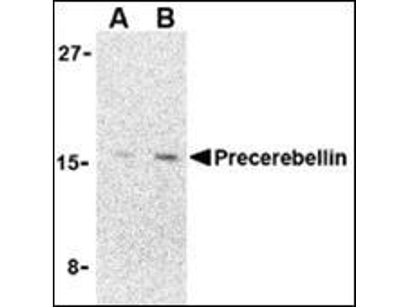 - Precerebellin antibody was raised against a 16 amino acid peptide from near the carboxy- terminus human precerebellin.