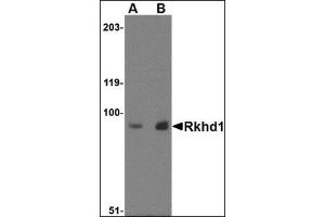 - Rkhd1 antibody was raised against a 15 amino acid peptide from near the center of human Rkhd1.