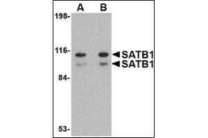Human special AT-rich sequence-binding protein-1 (SATB1) is a nuclear matrix/scaffold-associated region DNA-binding protein, predominantly expressed in the thymus and pre-B cells. Like its homolog SATB2, SATB1 selectively binds double-stranded, special AT-rich DNA sequences in which one strand exclusively consists of well-mixed A, T, and C nucleotides. SATB1 contains a dimerization domain that shares similarity with the PDZ motif, identified as an indispensable element for high-affinity binding of SATB1 to DNA. SATB1 constitutes a functional nuclear architecture that has a 'cage-like' protein distribution surrounding heterochromatin and regulates gene expression through chromatin remodeling/HDAC (histone deacetylase complex) and transcription factors recruitment. SATB1 functions as a 'genome organizer' essential for proper T-cell development. Recent studies show that SATB1 is necessary for breast cancer cells to become metastatic, and when ectopically expressed in non-metastatic cells, can induce invasive activity in vivo. At least two isoforms of SATB1 are known to exist.Synonyms: DNA-binding protein SATB1, Special AT-rich sequence-binding protein 1