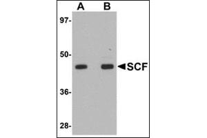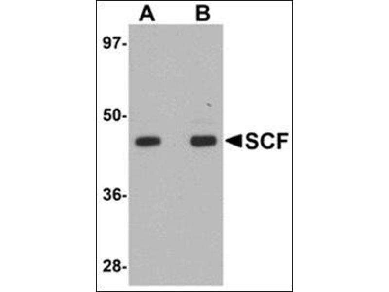 - SCF antibody was raised against an 18 amino acid peptide from near the center of human SCF.