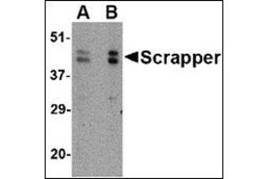 Members of the F-box protein family, such as Scrapper, are characterized by an approximately 40-amino acid F-box motif. SCF complexes, formed by SKP1, cullin, and F-box proteins, act as protein-ubiquitin ligases. Scrapper is selectively expressed in the brain, broadly expressed within the mouse CNS and is abundant at presynaptic membrane. Scrapper has orthologs in C. elegans, D. melanogaster, and mammals which suggests that it might function as an important membrane-localized E3 ligase in various species. Scrapper is a major presynaptic E3 ubiquitin ligase that acts through RIM1a via degradation and the ubiquitin-proteasome-system (UPS) pathway to critically regulate synaptic transmission. This identifies protein degradation as a mechanism for holding synaptic communication in check.Synonyms: F-box and leucine-rich repeat protein 20, F-box/LRR-repeat protein 2-like, F-box/LRR-repeat protein 20, FBL2
