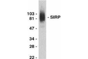 This antibody is directed against CD172a / SIRPA C-term. 75-110 kDa bands should be detected and it recognizes SIRP alpha 1, 2 and 3.