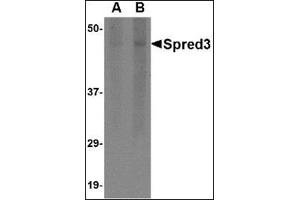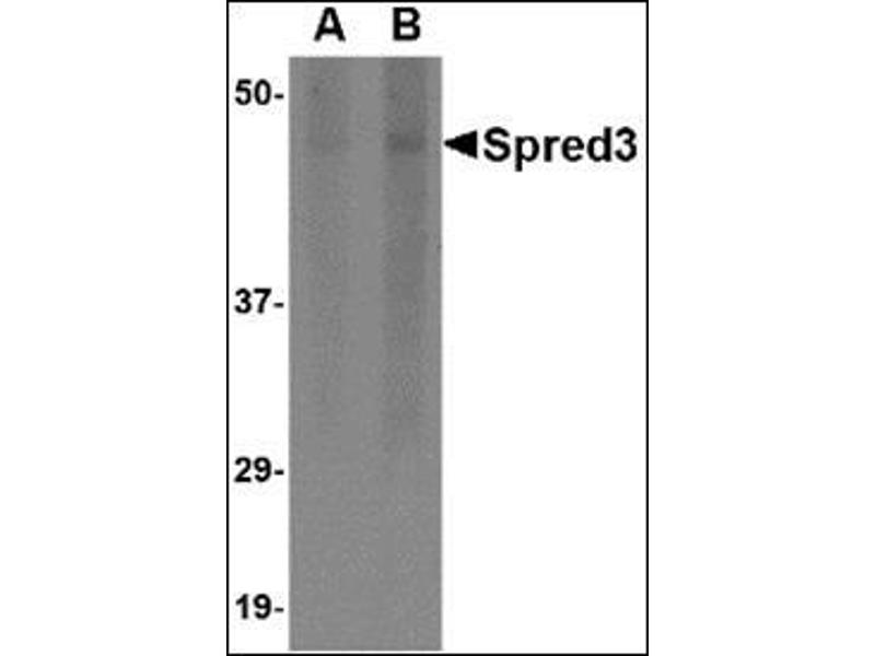 Spred3 is a member of the Sprouty family, a group of proteins that act as negative regulators during development. Like Spred1 and Spred2, Spred3 contains and EVH1 domain in its amino terminus and a Sprouty-related cysteine-rich (SPR) domain in its C-terminus, but does not possess a functional c-kit binding domain (KBD). The Spred proteins have also been implicated in the negative feedback regulation of FGF signaling in embryogenesis and angiogenesis. Although Spred3 was initially reported to be expressed in brain, at least one report also indicates that Spred3 can be found in liver. At least two isoforms of Spred3 are known to exist.Synonyms: EVE-3, Sprouty-related EVH1 domain-containing protein 3