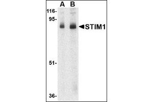 In T lymphocytes, the sole pathway for Ca++ entry following antigen-receptor binding is through store-operated Ca++-release-activated Ca++ (CRAC) channels. These channels are made up of the pore-forming subunit ORAI1 and the stromal interaction molecule 1 (STIM1), a protein that functions as a Ca++ sensor and activates the CRAC channels, migrating to the plasma membrane from endoplasmic reticulum (ER)-like sites which act as the Ca++ store. A related molecule, STIM2, acts to inhibit the STIM1-mediated store-operated Ca++ entry, and can form complexes with STIM1, suggesting they may play a coordinated role in controlling Ca++ entry. At least two isoforms of STIM1 are known to exist, this antibody will detect only the larger form.Synonyms: Stromal interaction molecule 1