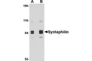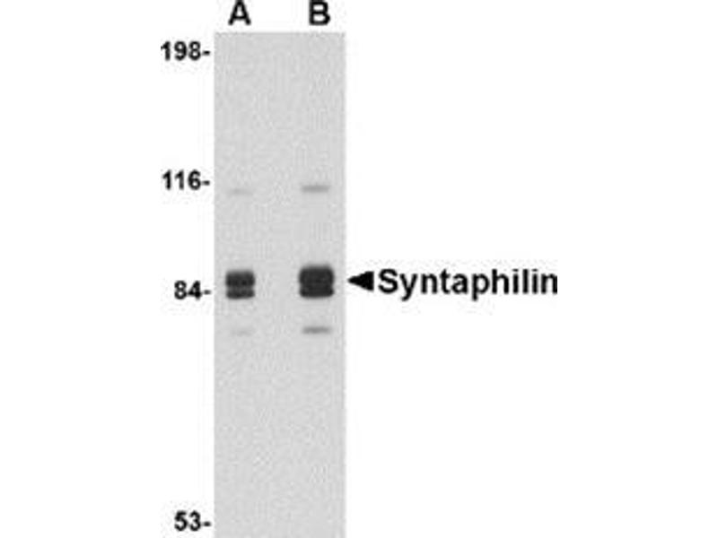 - Syntaphilin antibody was raised against a 16 amino acid peptide from near the center of human Syntaphilin.