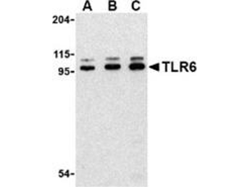 TLR6 antibody was raised against a peptide corresponding to 13 amino acids near the center of human TLR6.