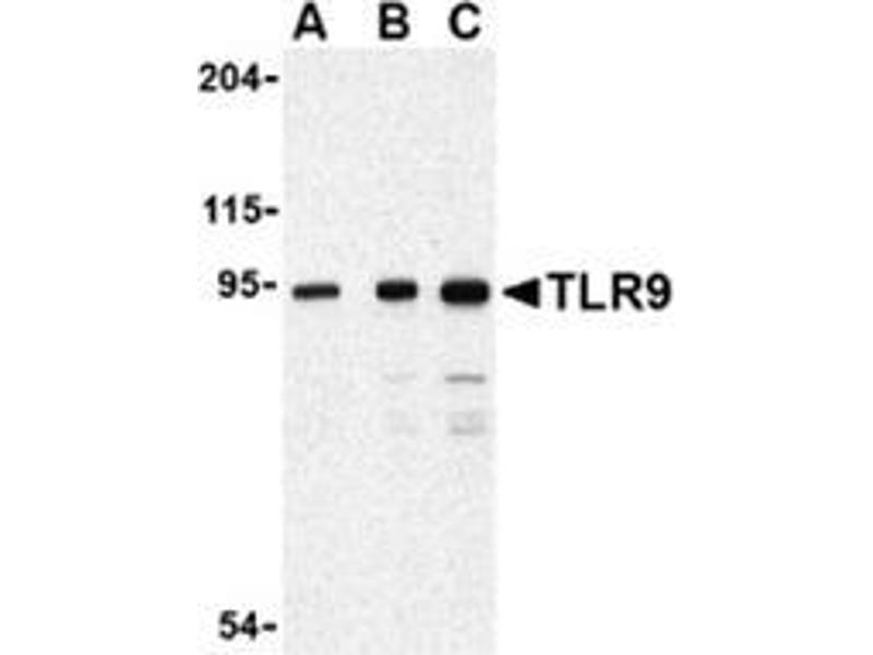 This Rabbit Polyclonal antibody specifically detects TLR9 in WB, IF and EIA. It exhibits reactivity toward Human, Mouse and Rat.It has been mentioned in 1 publication