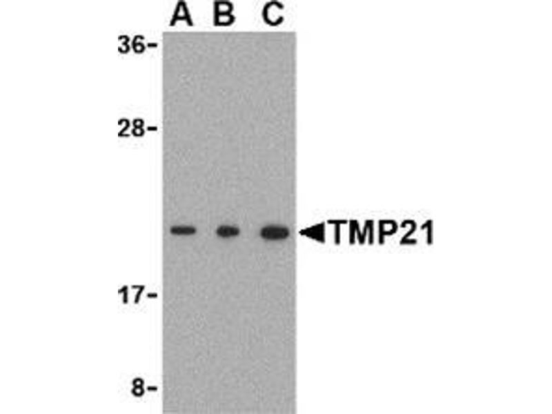 - TMP21 antibody was raised against a 19 amino acid peptide from near the carboxy terminus of human TMP21.