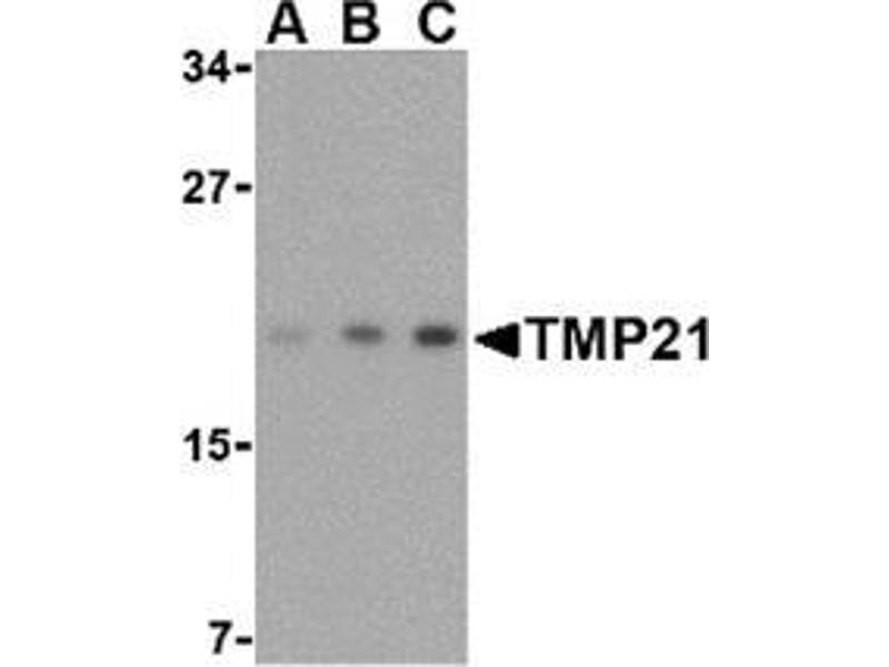 - TMP21 antibody was raised against a 18 amino acid peptide from near the center of human TMP21.