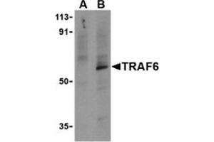 Signals from the IL-1 receptor (IL-1R)/Toll-like receptor (TLR) and TNF receptor (TNFR) superfamilies are critical for regulating the function of antigen-presenting cells. Signals transduced by these molecules lead to increased expression and activation of transcription factors such as NF-?B (1,2). TNF receptor-associated factor 6 (TRAF6) is unique in that it is a signaling adapter molecule common to both families (3). TRAF6 is important in cytokine production, dendritic cell (DC) maturation, and the T cell stimulatory capacity of DCs in response to TLR and CD40 ligands (4). It can be activated in the IL-1R/TLR signaling pathway by IL-1 receptor-associated kinase 1 (IRAK-1) (5) or by other TLR adaptor molecules such as TRIF (6). Also, it has been shown that TRAF6 can interact directly with TNFR family members CD40 and RANK (7).Synonyms: Interleukin-1 signal transducer, RING finger protein 85, TNF receptor-associated factor 6