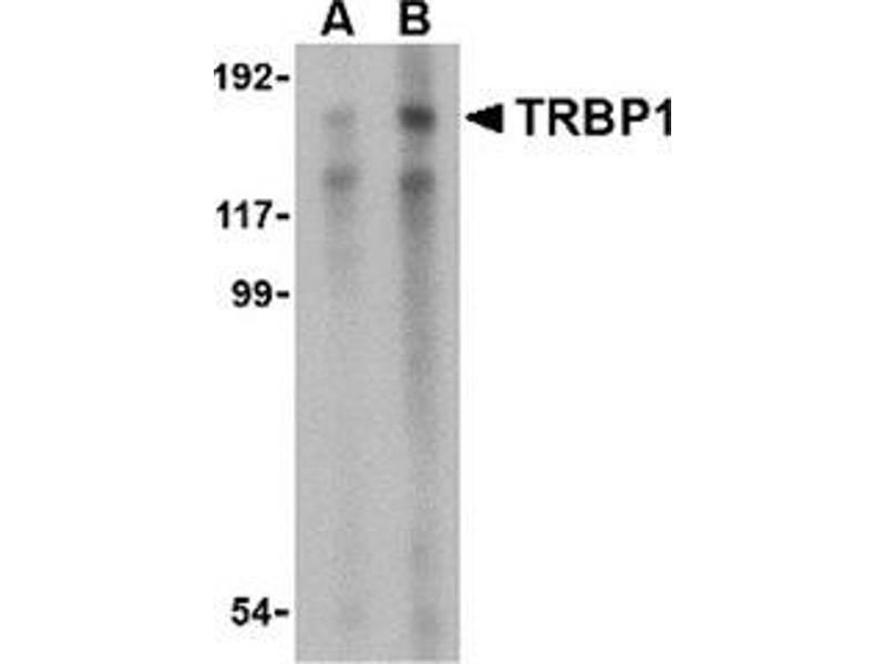 The human trans-activation response (TAR) RNA binding protein 1 (TRBP1) was initially identified as a protein that binds to the HIV-1 TAR RNA and activates the long terminal repeat (LTR) expression in the absence and presence of the viral trans-activator Tat. This binding is enhanced by the presence of co-factors such as elongation factor 1alpha (EF-1alpha), polypyrimidine tract-binding protein (PTB), and the chaperonin-like protein stimulator of TAR RNA-binding proteins (SRB). TRBP1 may act to disengage RNA polymerase II from TAR during transcriptional elongation if the RNA polymerase stalls at the TAR during transcriptional elongation.Synonyms: Probable methyltransferase TARBP1, TAR RNA-binding protein 1, TAR RNA-binding protein of 185 kDa, TRM3, TRP-185, TRP185