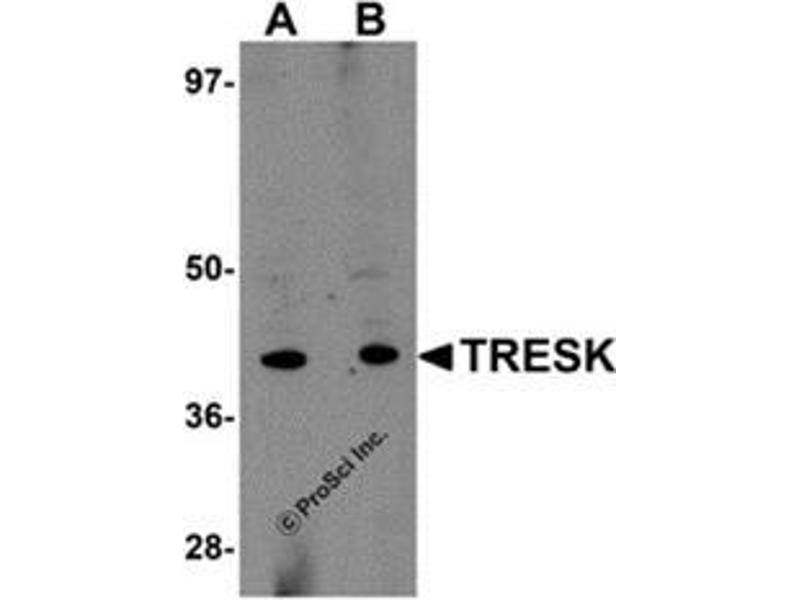 TRESK (TWIK-related spinal cord K+ channel) is a two-pore domain K+ channel that induces outward rectification and functions as a background K+ channel that is abundantly expressed in the spinal cord, thymus, spleen, and leukemic T-lymphocytes. TRESK is activated by increased cytoplasmic calcium concentration through calcineurin as well as by acetylcholine and histamine. It has been suggested that TRESK is linked to acute and chronic pain by activation of calcineurin. Other studies indicate that TRESK may play a role in the regulation of T-cell function and could be an excellent target to treat T-cell originated immune dysfunction.Synonyms: KCNK18, Potassium channel subfamily K member 18, TRESK, TRIK, TWIK-related individual potassium channel, TWIK-related spinal cord potassium channel