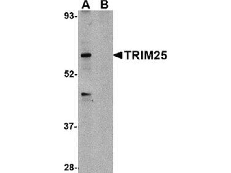 TRIM25, also known as estrogen responsive finger protein (EFP) is a member of the RING finger-B box-coiled coil family and is a downstream target of estrogen receptor a. Mice lacking this gene displayed an underdeveloped uterus and reduced estrogen responsiveness demonstrating that this protein is essential for estrogen dependent proliferation. TRIM25 expression is increased in breast carcinoma where it promotes the growth of breast tumor by functioning as an E3 ubiquitin ligase that targets the negative cell cycle checkpoint 14-3-3s. Recent reports have indicated that TRIM25 E3 ubiquitin ligase is essential for the retinoic-acid-inducible gene 1 (RIG-1) signaling pathway to elicit host antiviral innate immunity.Synonyms: EFP, Estrogen-responsive finger protein, RING finger protein 147, Tripartite motif-containing protein 25, ZNF147, Zinc finger protein 147