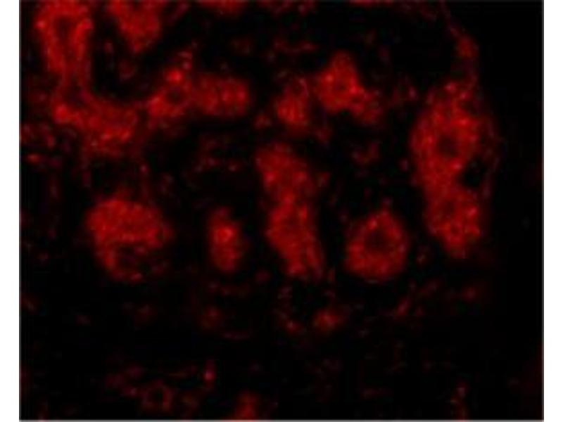 TRIM5 is a member of a broad family of otherwise unrelated proteins defined by the presence of a tripartite motif containing a RING domain, a B-box type 1, and a B-box type 2, followed by a coiled-coil region (1). TRIM5 has six alternately spliced isoforms, the longest of which is the ? variant which also contains a carboxy-terminal B30.2 (SPRY) domain (1). Expression of TRIM5alpha variants from humans, rhesus monkeys, and African green monkeys enabled resistance to infection by various retroviruses including HIV-1 (2,3), albeit at differing efficiencies. All TRIM5alpha variants could inhibit at least two different retroviruses, but not from those viruses isolated from the same species, suggesting that TRIM5alpha acts as a natural barrier to cross-species retrovirus transmission (3).Synonyms: RING finger protein 88, Tripartite motif-containing protein 5