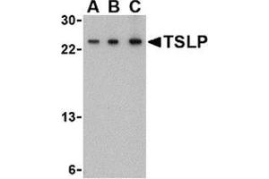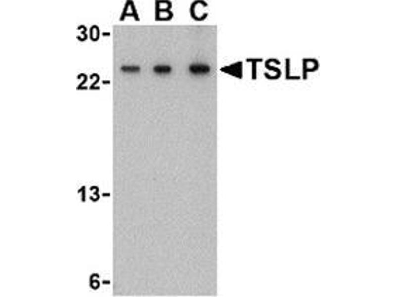 This Rabbit Polyclonal antibody specifically detects Thymic Stromal Lymphopoietin in WB, IHC (p) and EIA. It exhibits reactivity toward Human and Mouse.