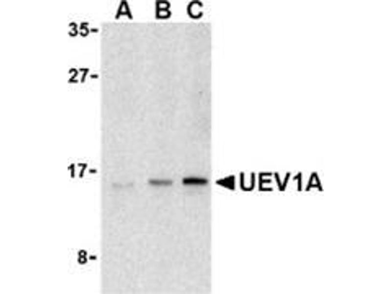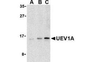 - UEV1A antibody was raised against a peptide corresponding to 15 amino acids near the C- terminus of human UEV1A.
