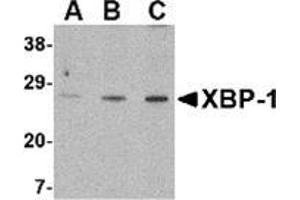 X box binding protein 1 (XBP-1) is a key protein in the mammalian unfolded protein response (UPR) that protects the cell against the stress of malfolded proteins in the endoplasmic reticulum (ER) . Upon sensing unfolded proteins, an ER transmembrane endonuclease and kinase termed IRE1p is activated and excises an intron from XBP-1 mRNA. The spliced XBP-1 mRNA results in a 371 amino acid protein (XBP-1s) which is then translocated to the nucleus where it binds to the regulatory elements of downstream genes. Together with other UPR transcription factors such as ATF6, XBP-1 stimulates the production of ER stress proteins including the ER resident protein chaperones glucose regulated protein (GRP) 78 and GRP94 (3,4).Synonyms: Tax-responsive element-binding protein 5, X-box-binding protein 1, XBP-1, XBP2