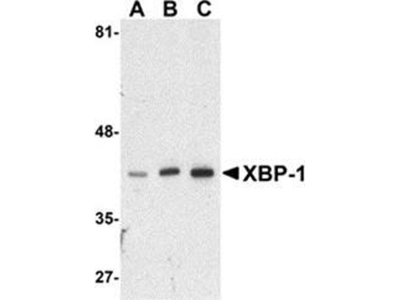 X box binding protein 1 (XBP-1) is a key protein in the mammalian unfolded protein response (UPR) that protects the cell against the stress of malfolded proteins in the endoplasmic reticulum (ER) . Upon sensing unfolded proteins, an ER transmembrane endonuclease and kinase termed IRE1p is activated and excises an intron from XBP-1 mRNA. The spliced XBP-1 mRNA results in a 371 amino acid protein (XBP-1s) which is then translocated to the nucleus where it binds to the regulatory elements of downstream genes. Together with other UPR transcription factors such as ATF6, XBP-1 stimulates the production of ER stress proteins including the ER resident protein chaperones glucose regulated protein (GRP) 78 and GRP94 (3,4).Synonyms: Tax-responsive element-binding protein 5, X-box-binding protein 1, XBP-1, XBP2