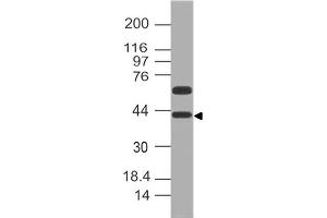 A partial length recombinant DPPA4 protein (amino acids 1-206) was used as the immunogen for this antibody.