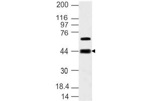 A partial length recombinant S1P3 receptor, Edg-3 protein (amino acids 80-350) was used as the immunogen for this antibody.