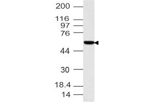 - A partial length recombinant Tis7 protein (amino acids 1-300) was used as the immunogen for this antibody.