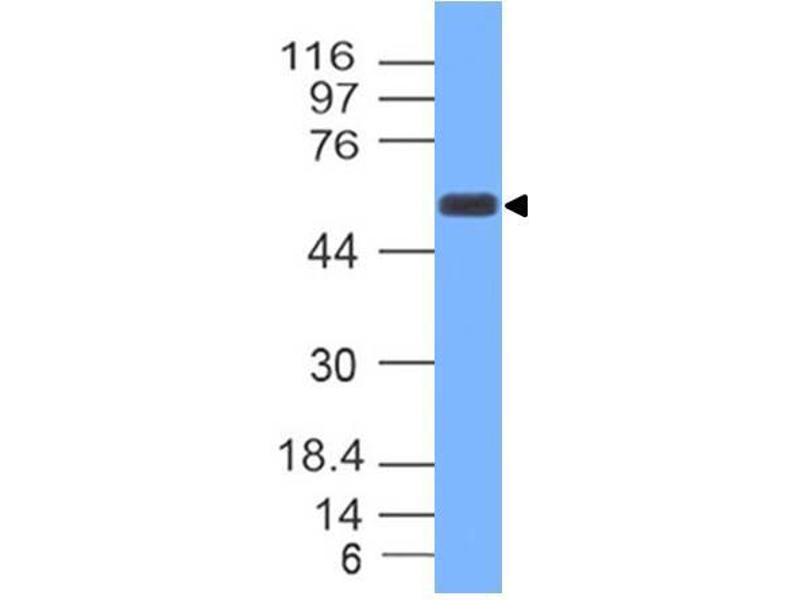 A partial length recombinant TOX protein (amino acids 450-525) was used as the immunogen for this antibody.