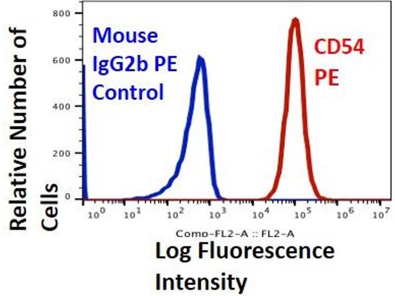 - The clone LB-2 specifically binds with CD54 also known as Intercellular adhesion molecule-1 (ICAM-1), a cell surface antigen expressed by various types of human immune and non-immune cells. CD54 is an 85-110 kDa type I transmembrane glycoprotein that belongs to the Ig supergene family and is a surrogate marker of antigen presenting cell activation. CD54 is expressed mostly on endothelial cells. It also weakly expressed by naive B and T cells and moderately expressed on activated B and T cells as well as monocytes. CD54 is highly expressed on human myeloma cells, Burkitt's lymphoma cells, erythroleukemia cells, and B-lymphoblastoid cells. The CD54 adhesion molecule plays roles in inflammatory and immune responses and neoplasia.