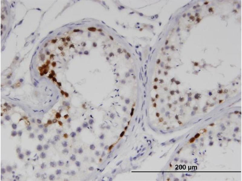 The Mouse Monoclonal anti-SSX2 antibody has been validated for WB, ELISA and IHC (p). It is suitable to detect SSX2 in samples from Human. There are 2+ publications available.