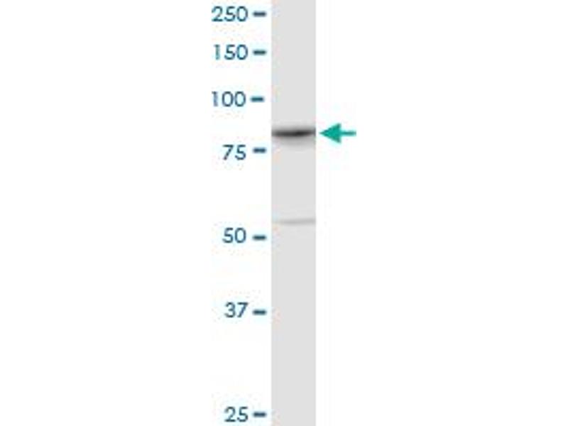 YY1AP1 (AAH01655, 1 a.a. ~ 739 a.a) full-length recombinant protein with GST tag. MW of the GST tag alone is 26 KDa.